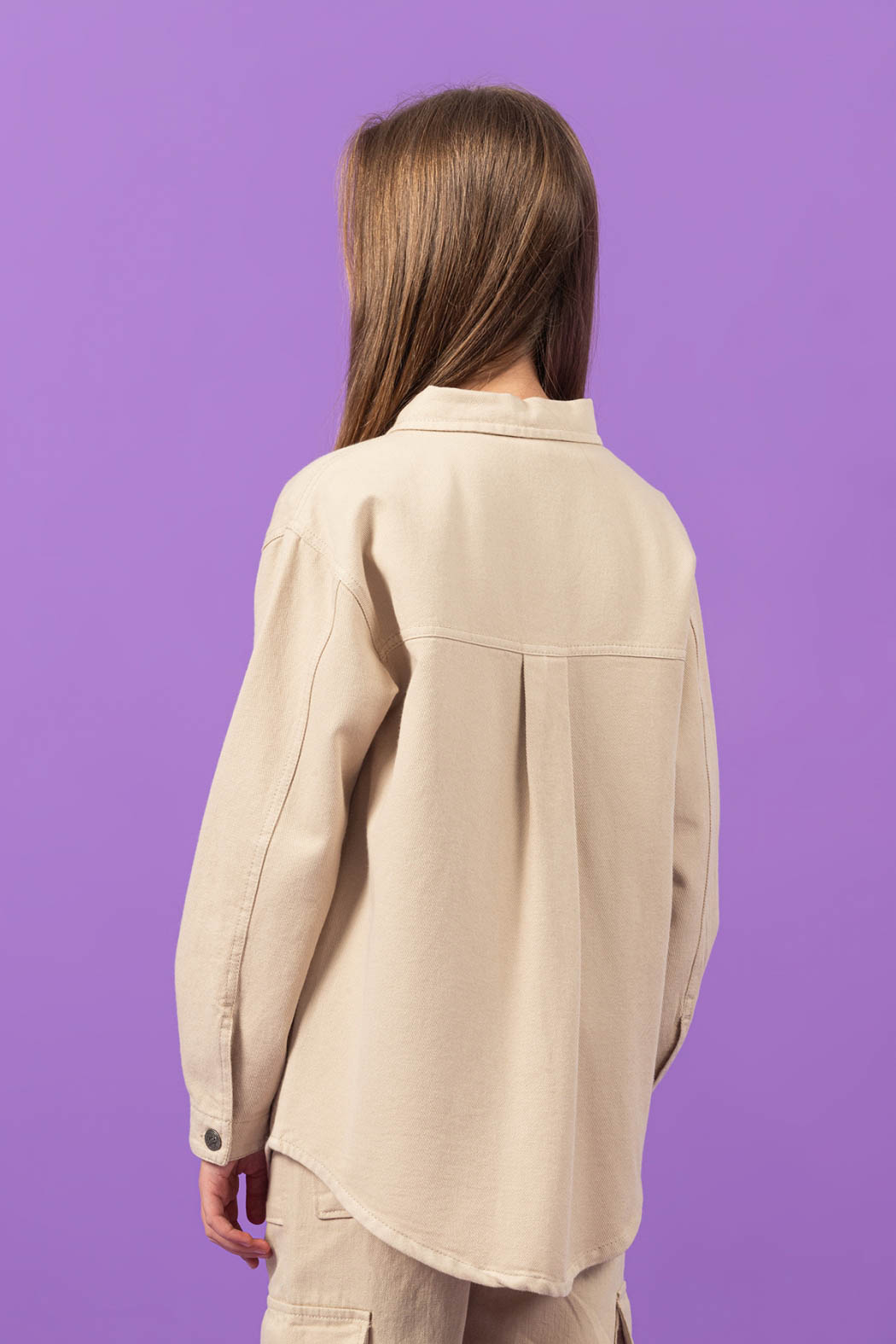 Рубашка DMB для девочки оптом. Это универсальная одежда на любой сезон. Удлиненный крой, отложенный воротник и карманы придают ей стиль и особый шарм. Рубашка для девочки выполнена из 100% хлопка (габардин).
