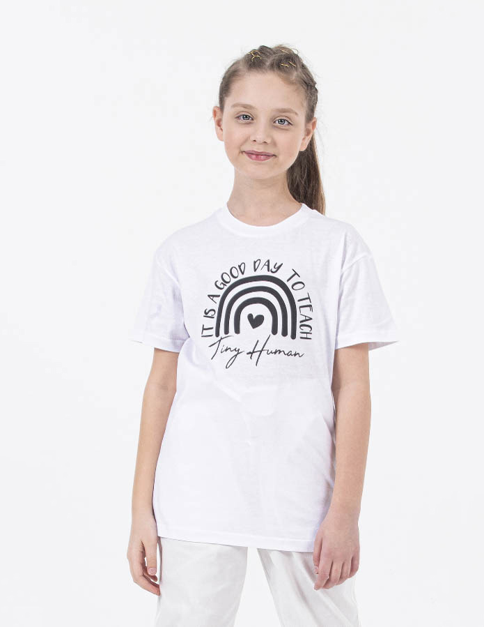 Футболка DMB для девочки прямого кроя оптом, выполнена из 100% хлопка. Натуральная ткань обладает важнейшим качеством: не вызывает аллергию и раздражение, позволяет коже"дышать".