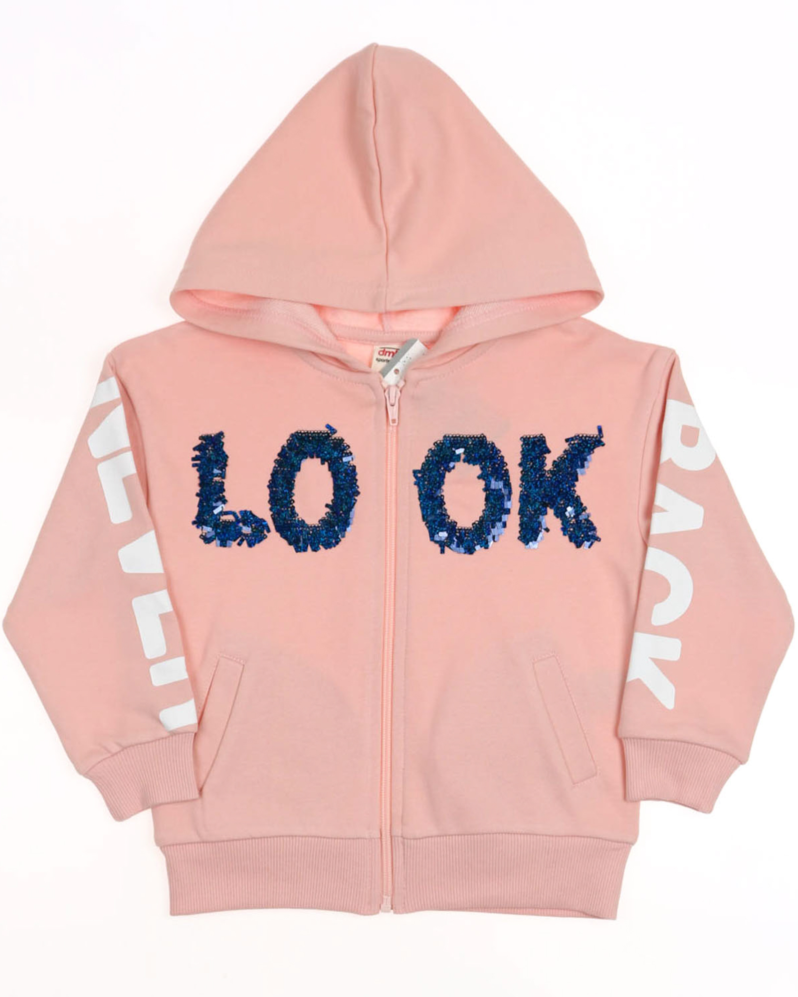 Стильный спортивный костюм для девочки выполнен из трикотажа футер (петля). Толстовка на молниии с капюшоном. На груди аппликация из пайеток. Брюки умеренного объема зауженные к низу.