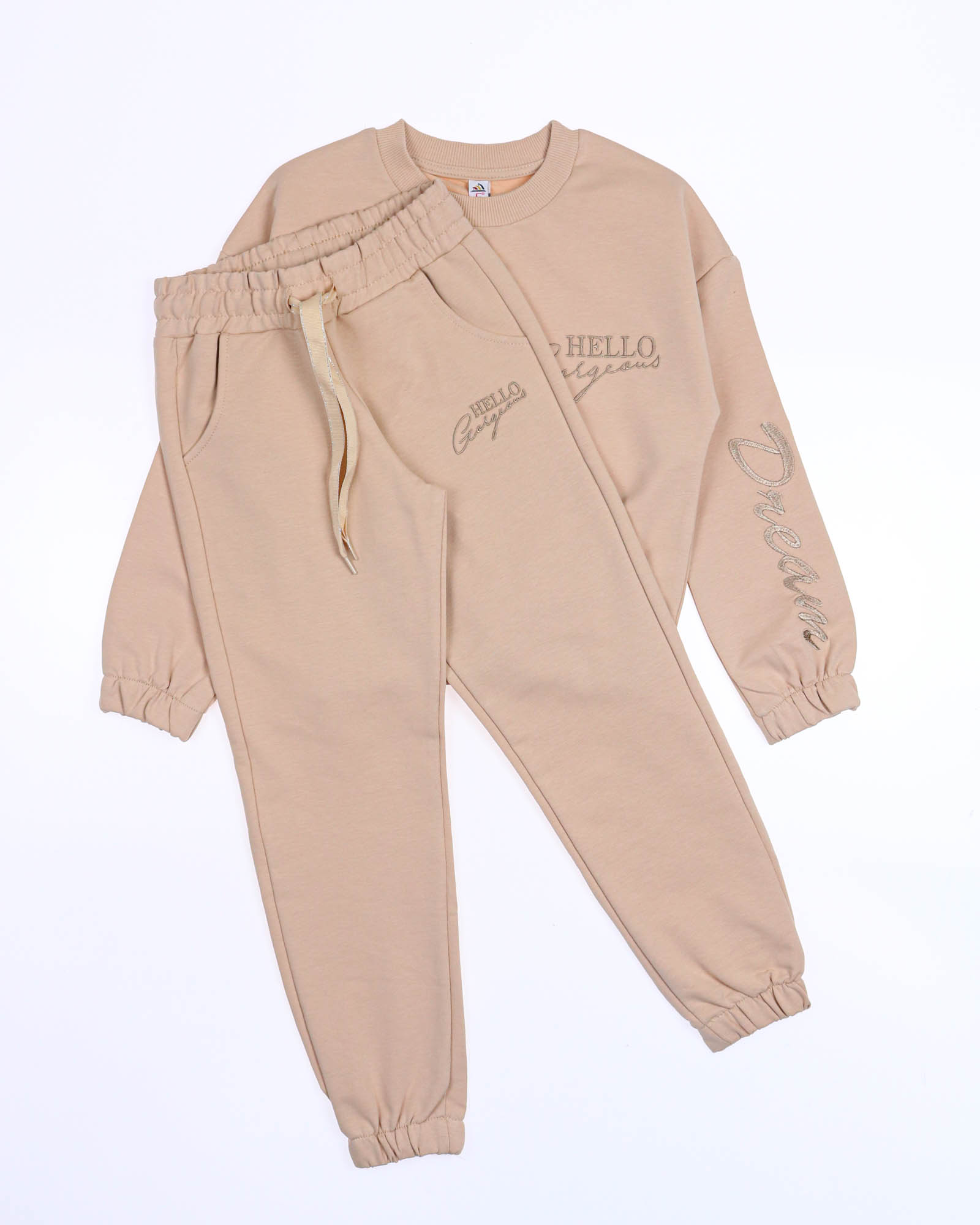 Стильный костюм создан для занятий спортом и прогулок.Свитшот со спущенной линией плеча, брюки с манжетами. Костюм выполнен из трикотожа футер 2х нитка.