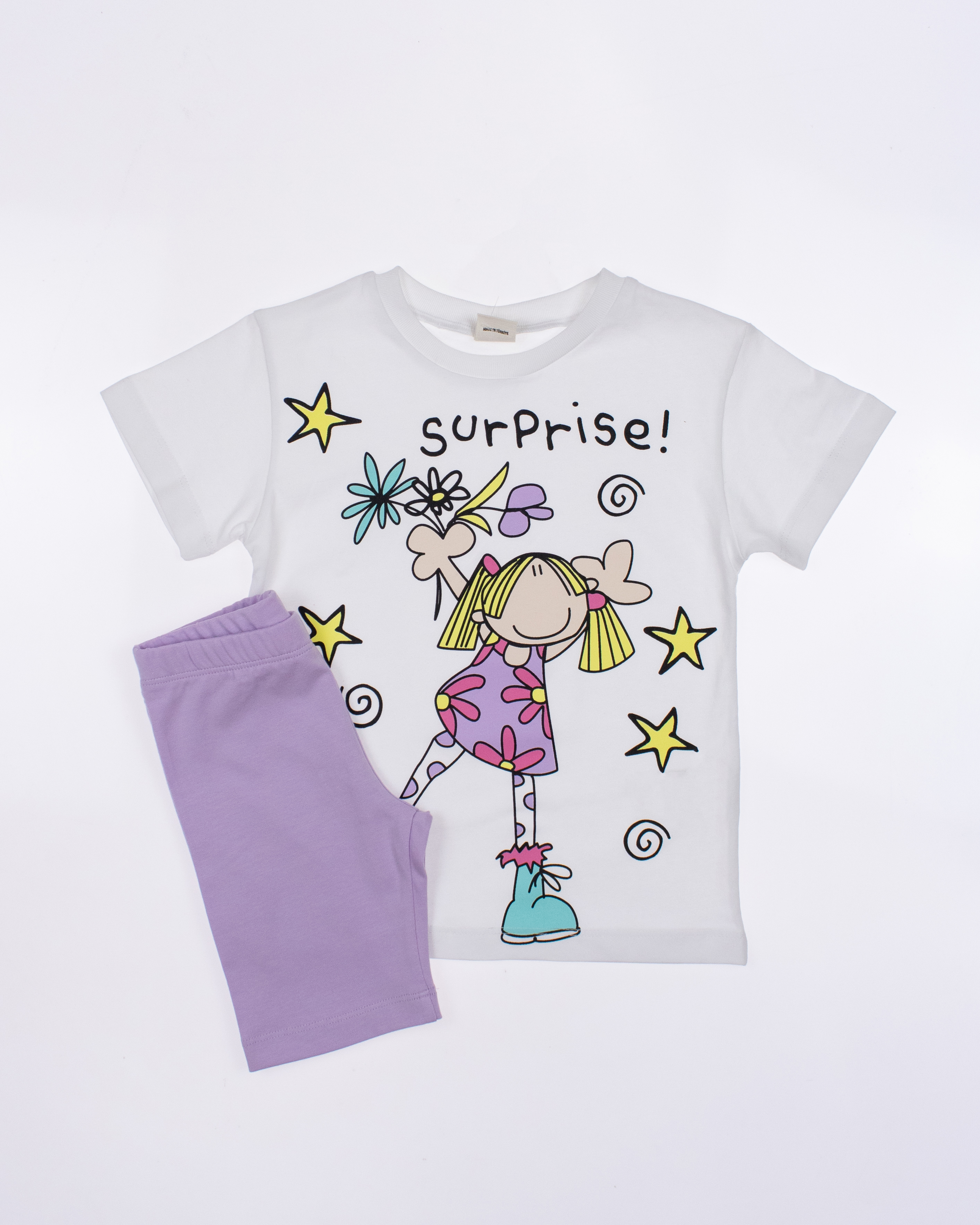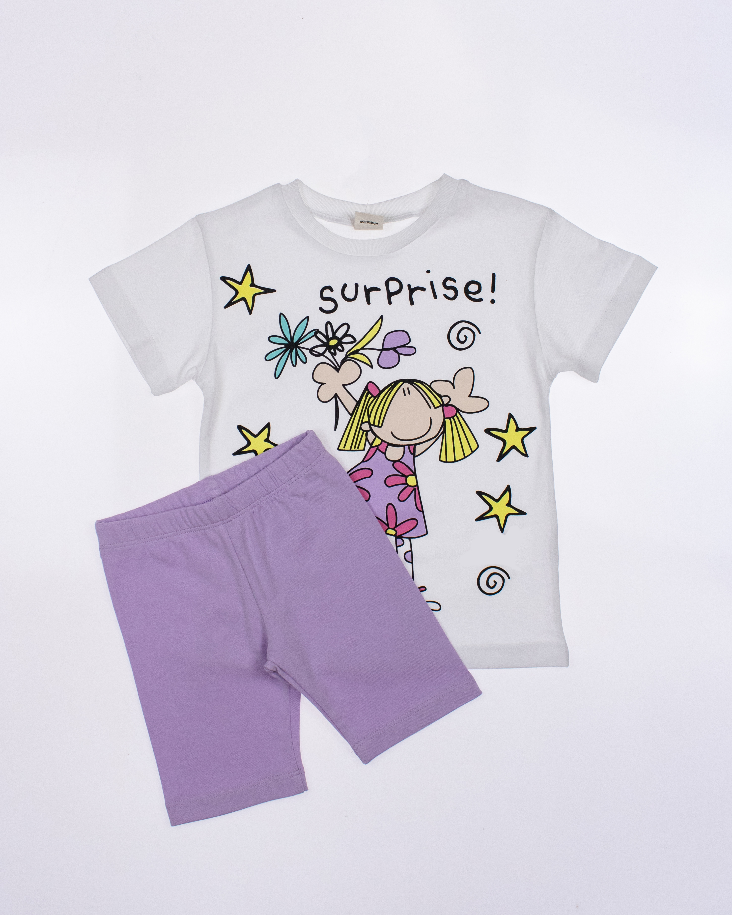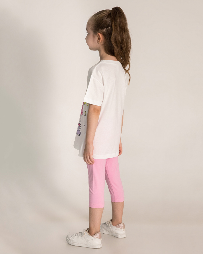 Детский костюм торговой марки DMB - это отличный выбор для маленькой модницы! Произведенный в Турции из высококачественного трикотажа кулирка, этот костюм обеспечивает комфорт и удобство на целый день. Свободный крой и разрезы по бокам делают эту футболку стильной и современной. А принт на передней части футболки придает ей яркость и оригинальность. Этот костюм подойдет как для повседневной носки, так и для активного отдыха на свежем воздухе. А оптовая цена делает его отличным выбором для магазинов и интернет-магазинов детской одежды. Порадуйте своих малышей качественной и стильной одеждой от DMB !