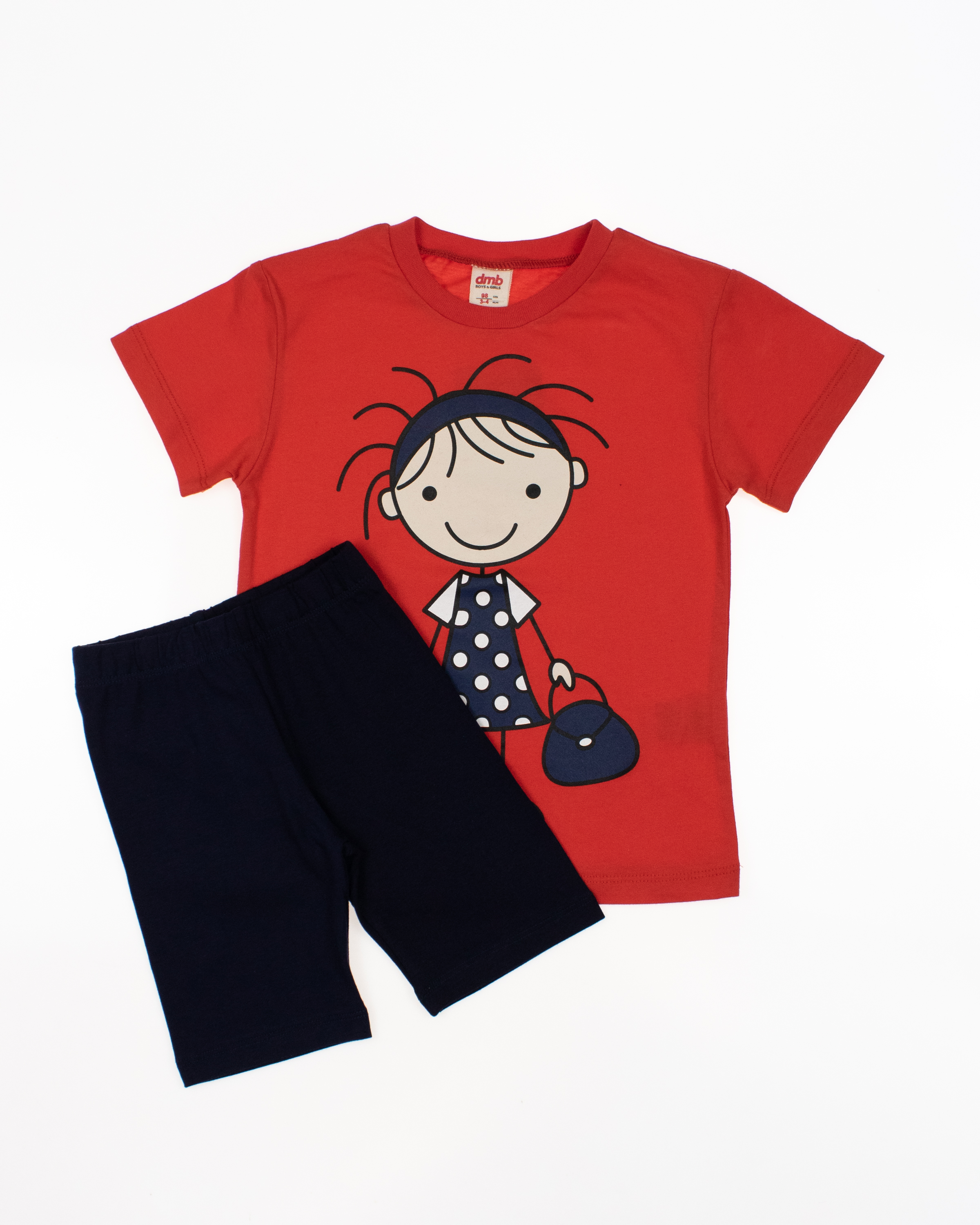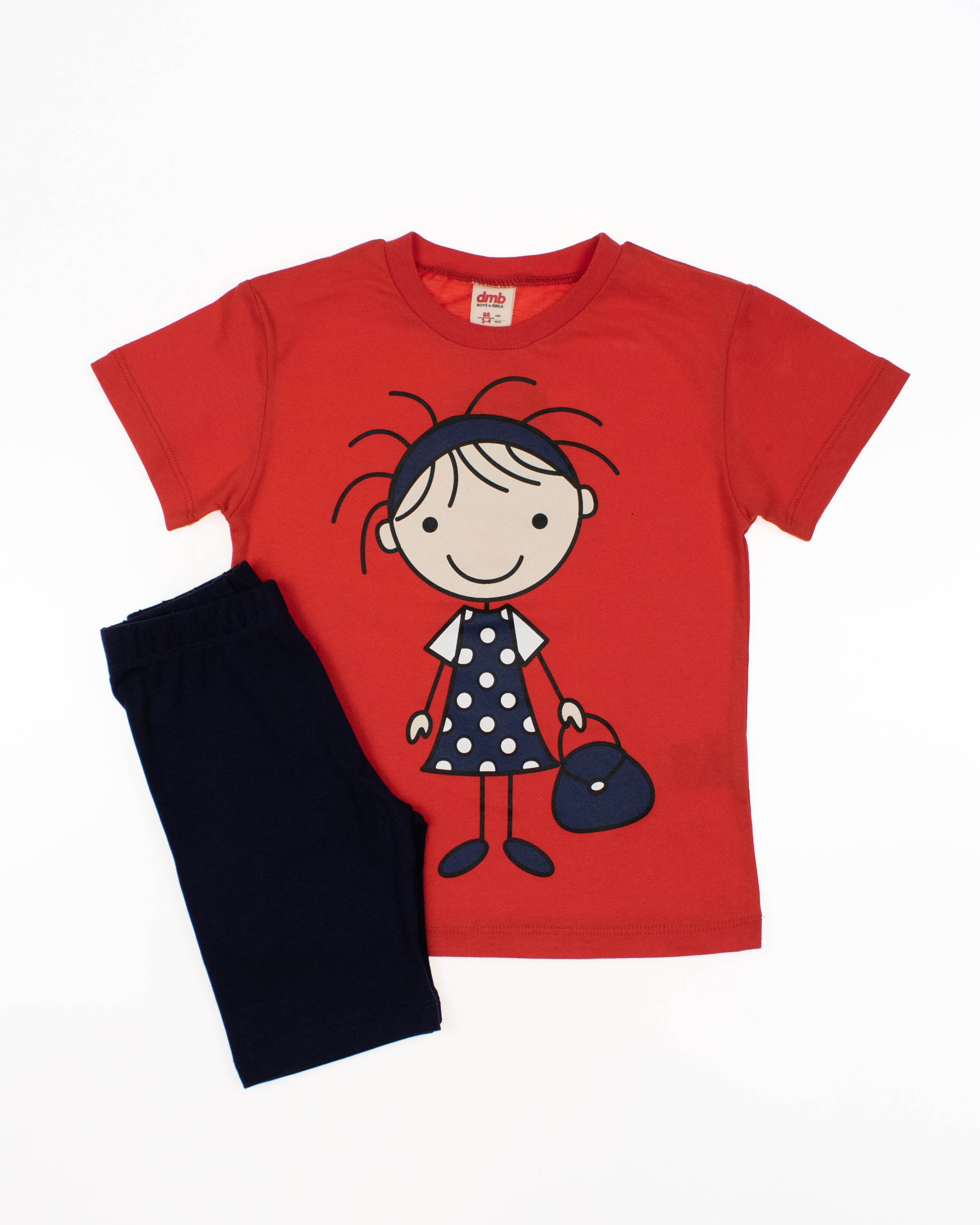 Детский костюм торговой марки DMB - это отличный выбор для маленькой модницы! Произведенный в Турции из высококачественного трикотажа кулирка, этот костюм обеспечивает комфорт и удобство на целый день. Приталенный крой делают эту футболку стильной и современной. Принт на передней части футболки придает ей яркость и оригинальность. Этот костюм подойдет как для повседневной носки, так и для активного отдыха на свежем воздухе. А оптовая цена делает его отличным выбором для магазинов и интернет-магазинов детской одежды. Порадуйте малышей качественной и стильной одеждой от DMB !