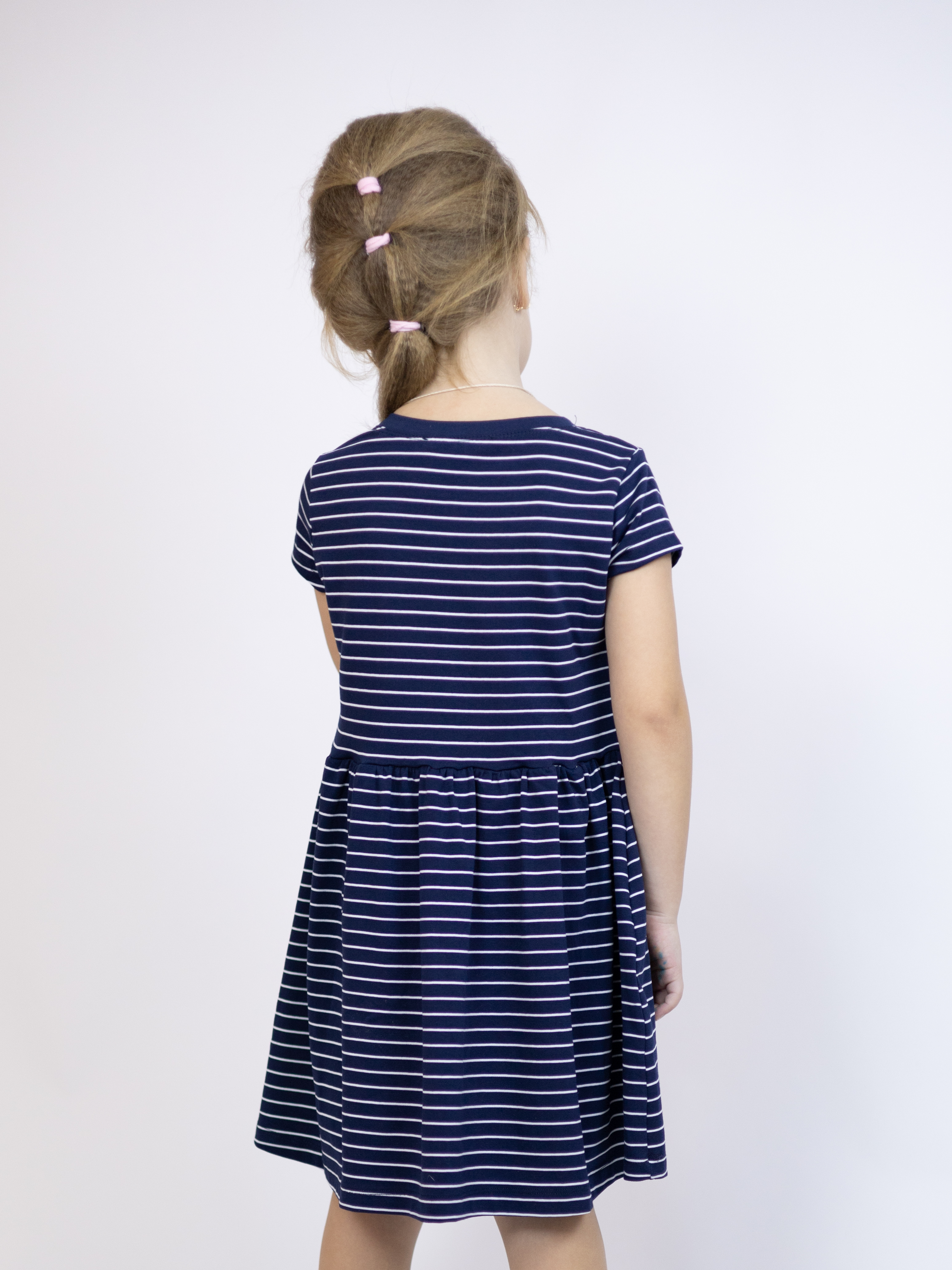 Милое повседневное трикотажное платье FIRST для принцессы! Легкая трикотажная ткань, летящая юбочка со сборкой на талии - девочкам очень нравится такой крой. Для детского сада, дома, на прогулки!