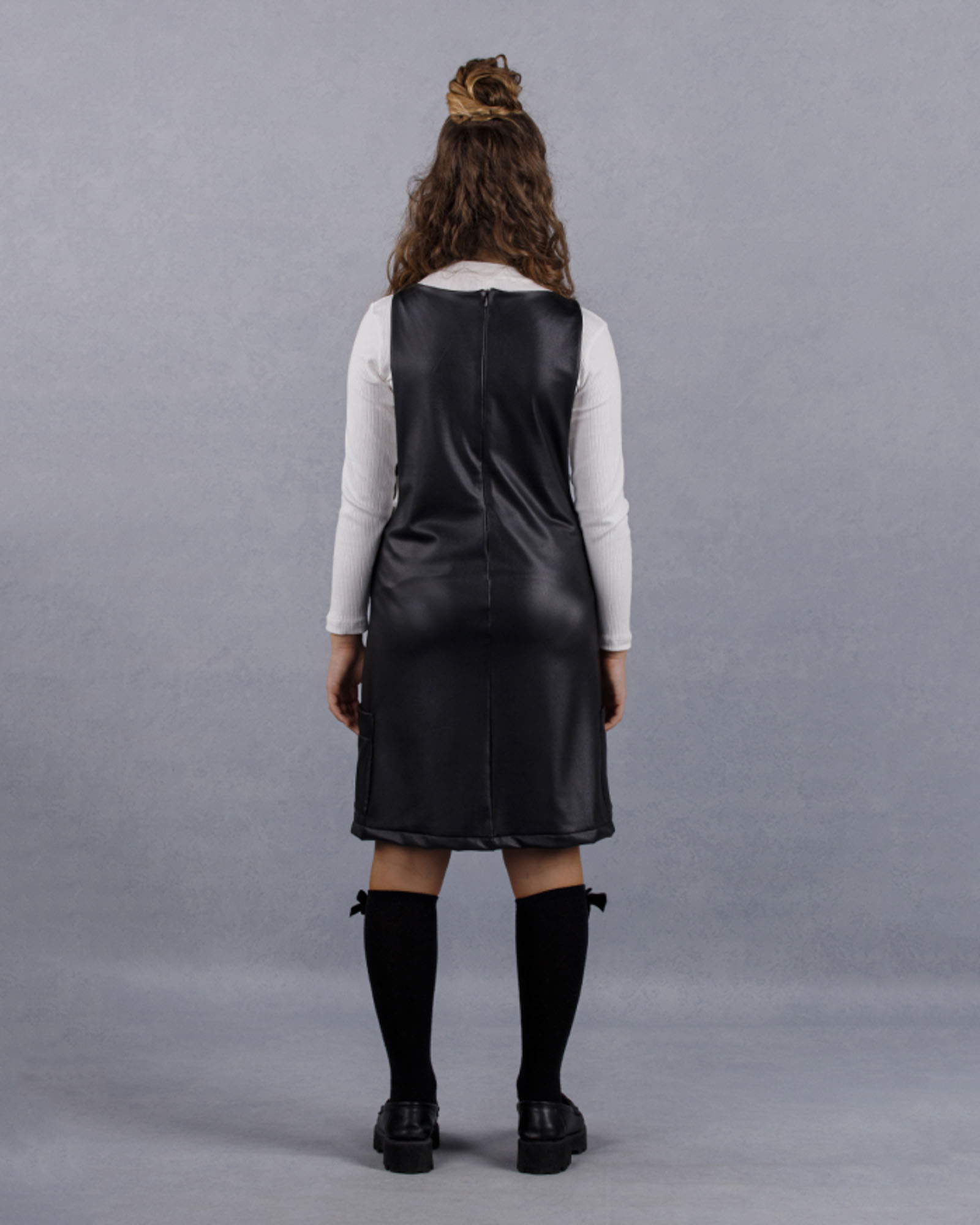 Эта модель отлично впишется в базовый гардероб. Сарафан исполнен в трёх цветах. Сарафан из эко-кожи приталенного силуэта сзади застегивается на потайную молнию,изнаночная сторона сарафана без подклада.