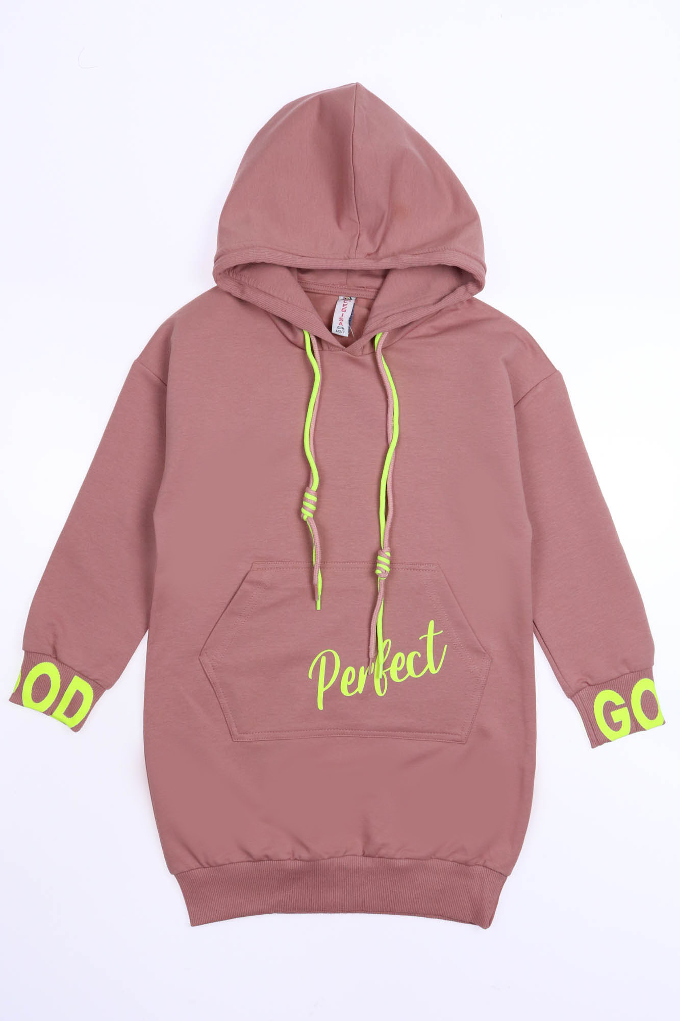 Худи Cegisa для девочки оптом выполнено из качественного трикотажа футер (петля). Модель декорирована яркими шнурками и принтом.