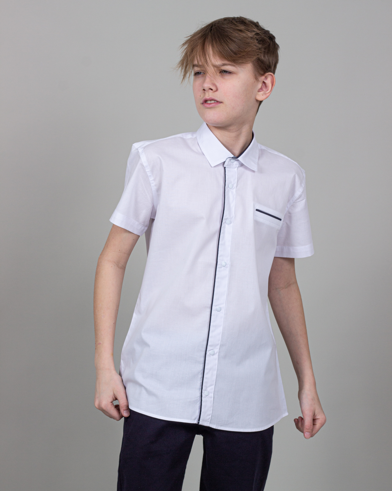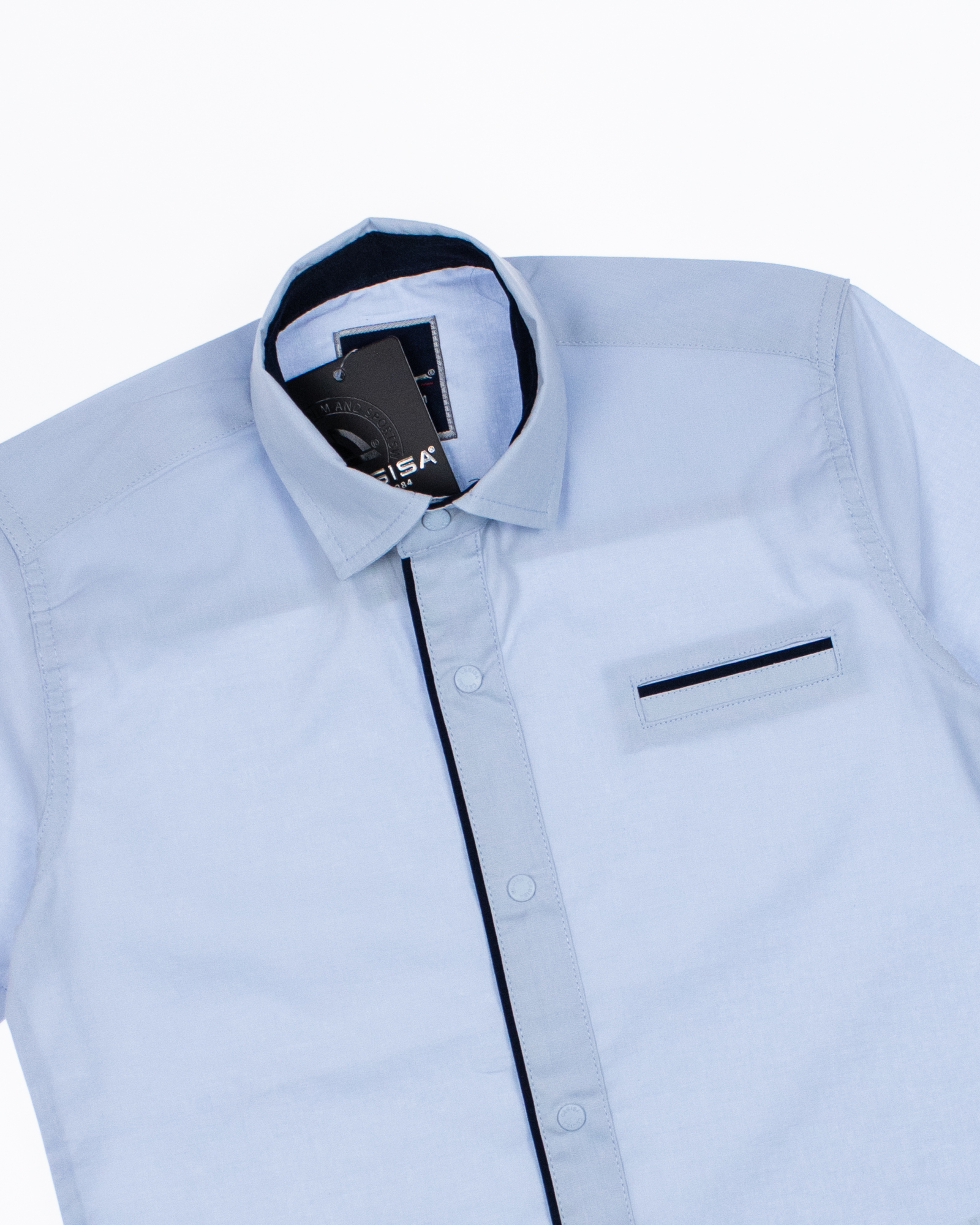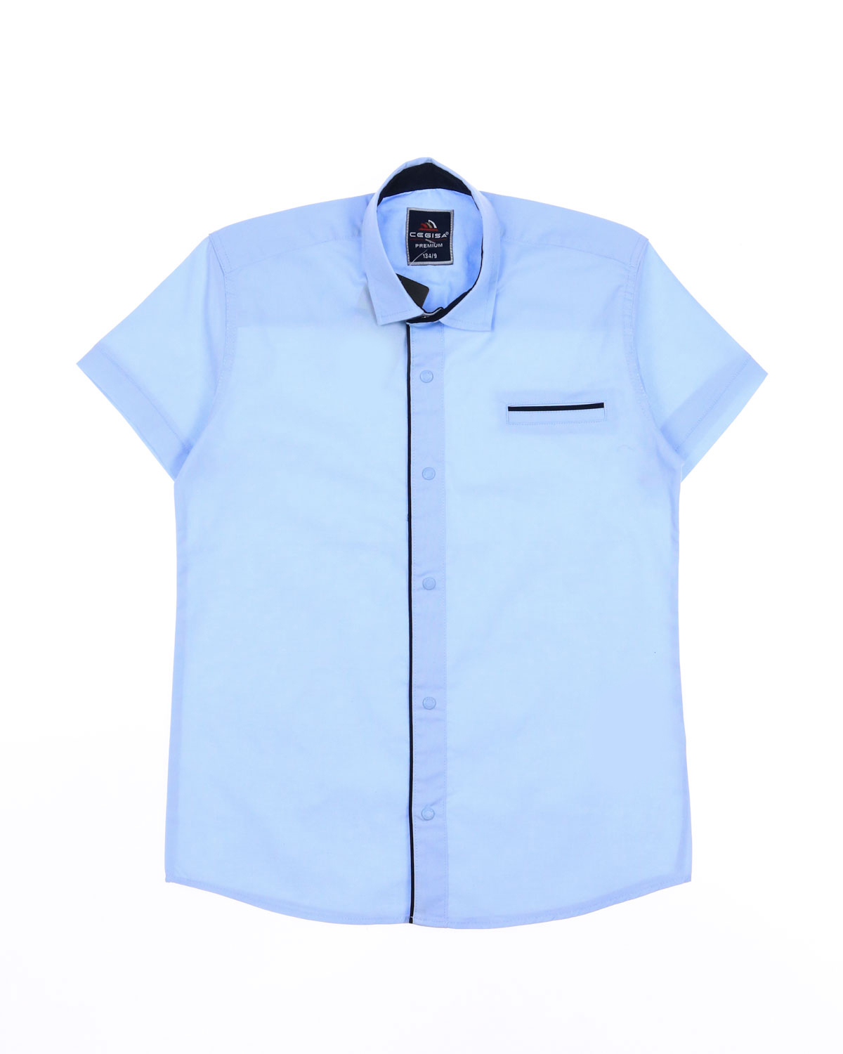 Однотонная рубашка Cegisa для мальчика оптом. Модель приталенного кроя с короткими рукавами, отложным воротником, застегивается на кнопки.