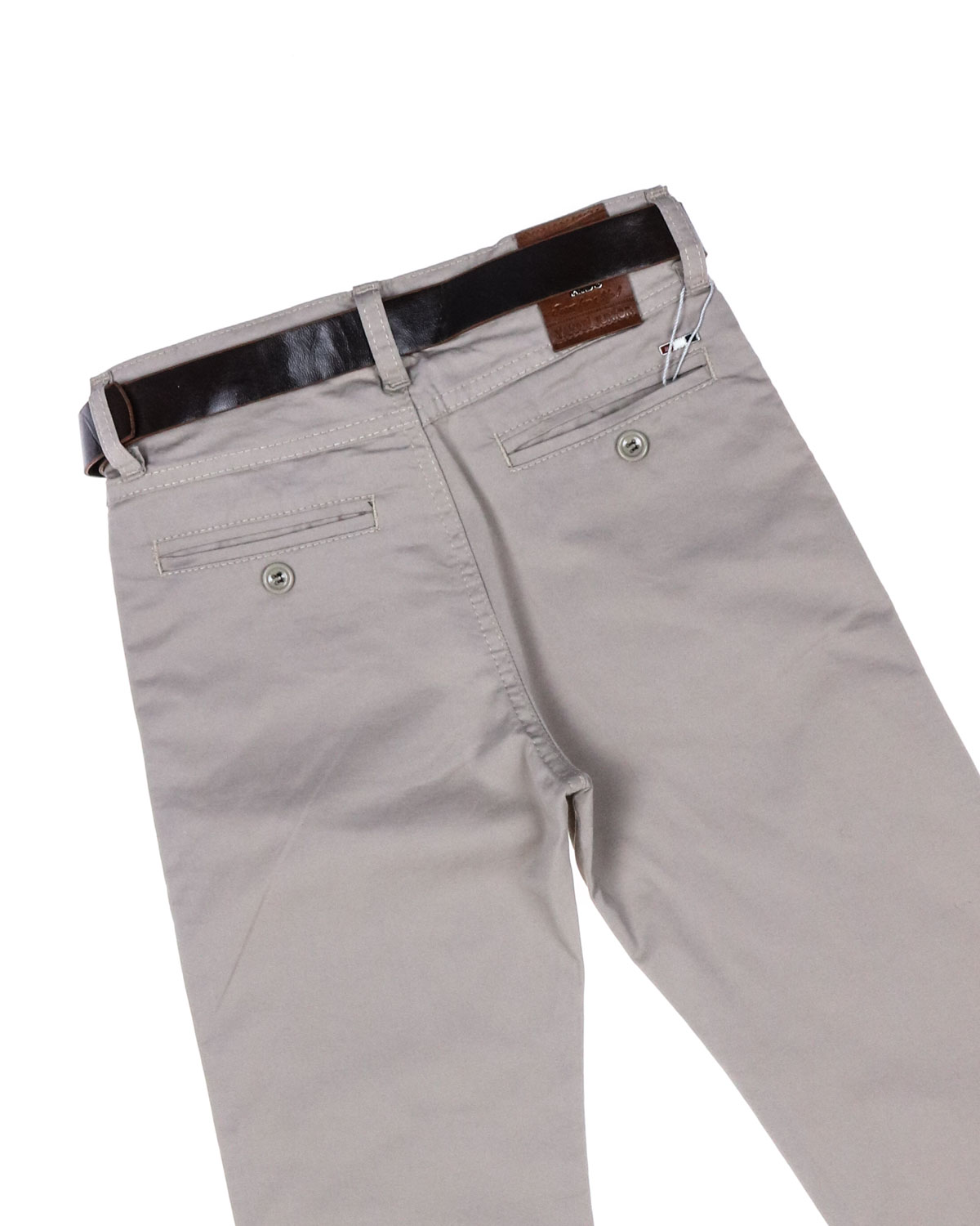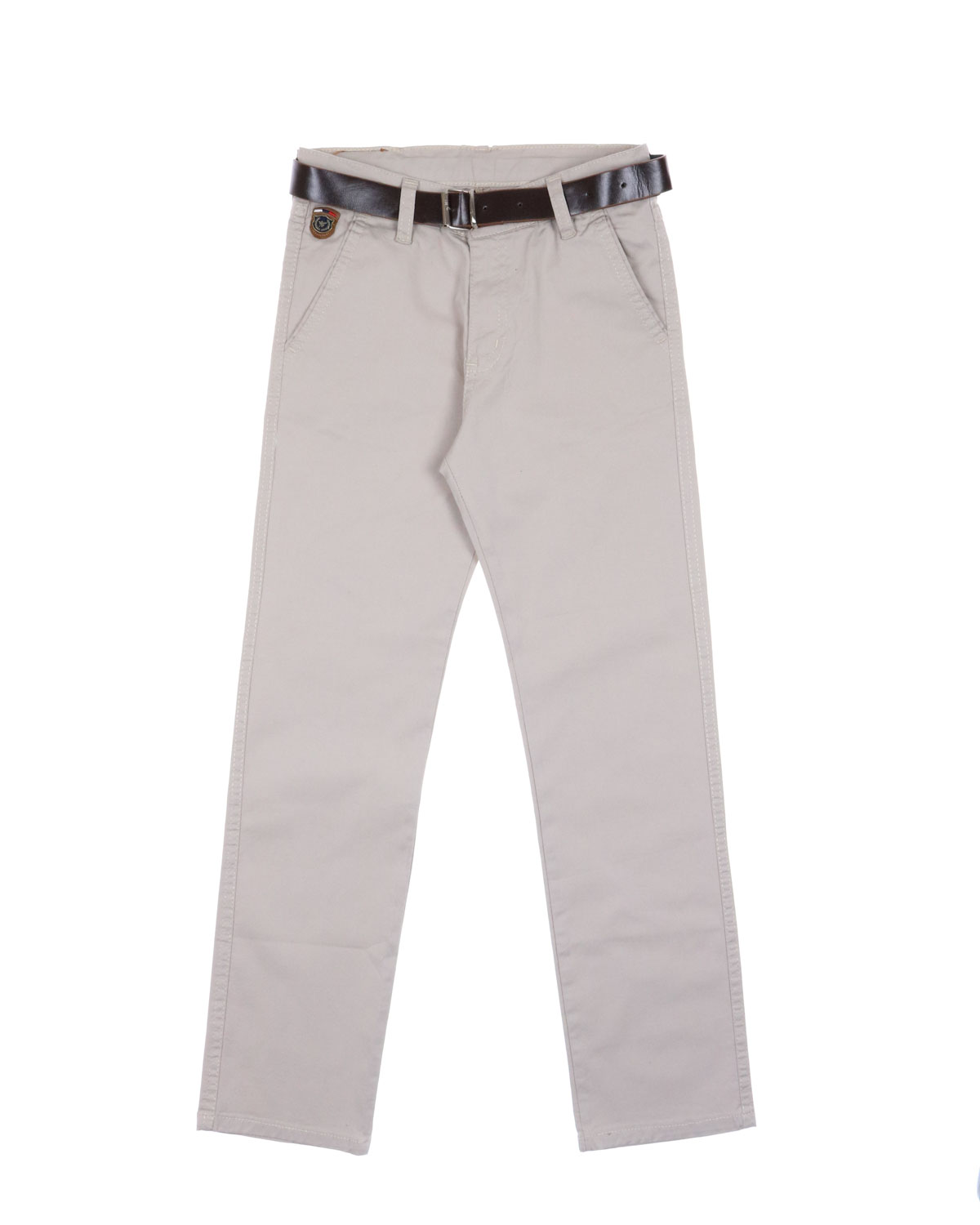 Брюки для мальчика выполнены из хлопковой ткани. Средняя посадка, прямые, застегиваются на молнию и пуговицу. Спереди два внутренних кармана, сзади прорезные карманы с застежкой на пуговицу. Регулируемый пояс.