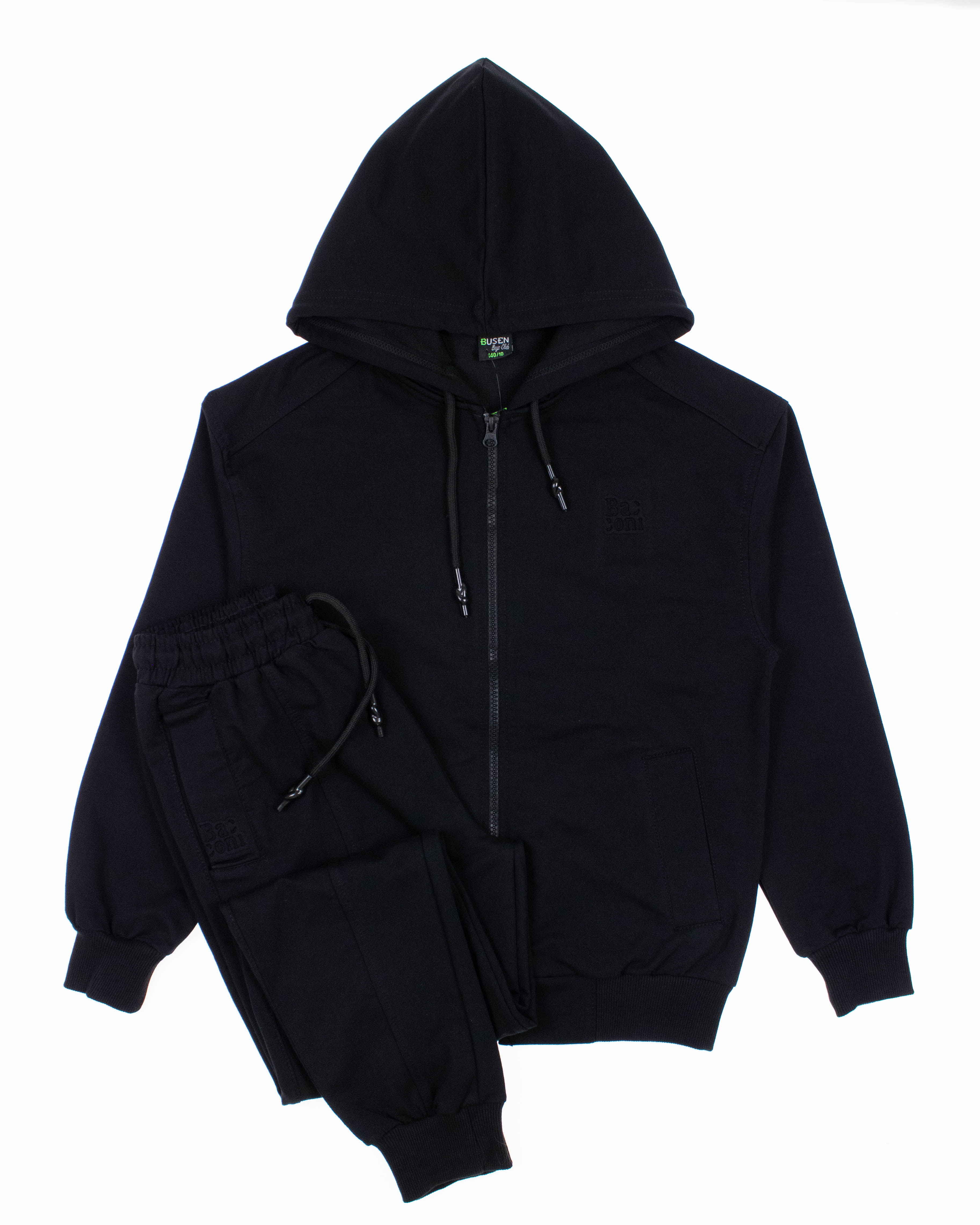 Детский спортивный костюм для мальчика Busen – это идеальный выбор для активных юных спортсменов, которые ценят не только комфорт, но и стиль. Изготовленный из трикотажа футер (петля), данный комплект обеспечивает отличную теплоизоляцию и воздухопроницаемость, что делает его идеальным для занятий спортом. Костюм состоит из удобной олимпийки и стильных брюк. Олимпийка застегивается на молнию, что позволяет быстро и легко одеваться и снимать в любых условиях. Манжеты на рукавах и брюках надежно фиксируют костюм на месте и защищают от ветра, что особенно важно во время активных тренировок и игр на свежем воздухе.Брюки имеют пояс на резинке с регулируемым шнурком, что обеспечивает максимальный комфорт и свободу движений, позволяя легко подгонять размер под индивидуальные особенности фигуры. Кроме того, наличие карманов делает этот костюм еще более практичным – в них удобно хранить мелкие вещи или просто согреть руки. Спортивный костюм Busen идеально подойдет для школьных занятий физкультурой, прогулок на улице и