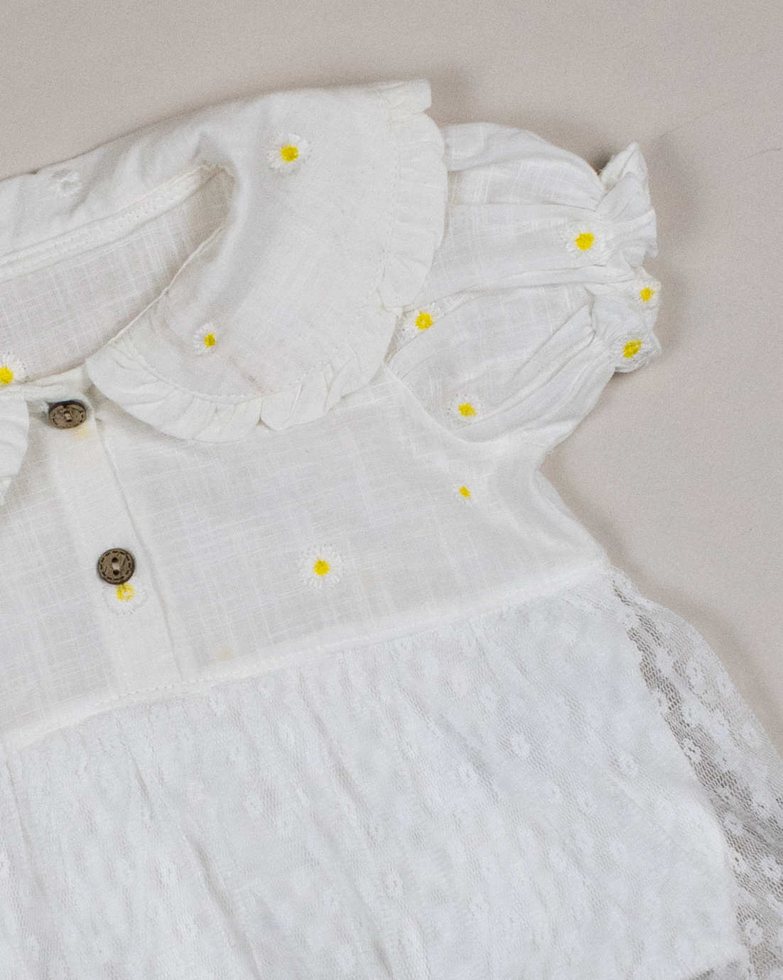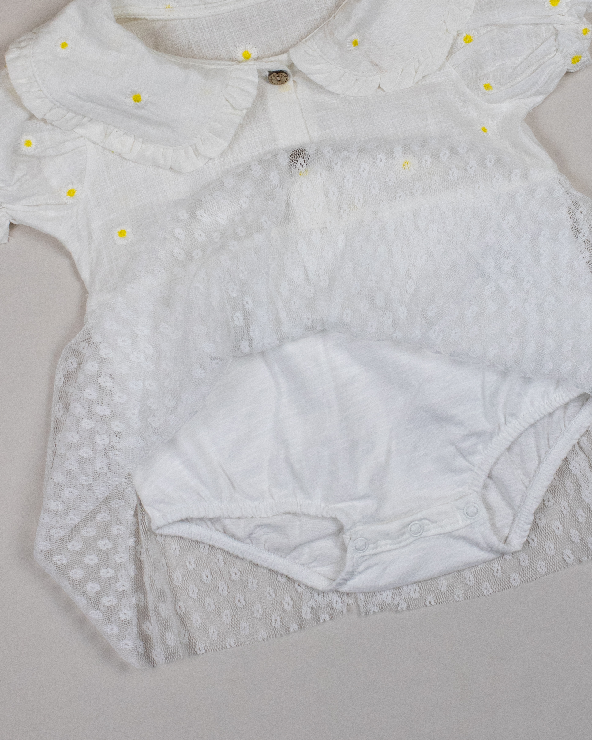 Платье- боди PUAN  с коротким рукавом для малышки очень комфортно в использовании, не стесняет движений. Изготовлено из 100% хлопка. Застежка спереди и снизу позволит в считанные секунды переодеть ребенка. Юбка выполнена из мягкой сетки.