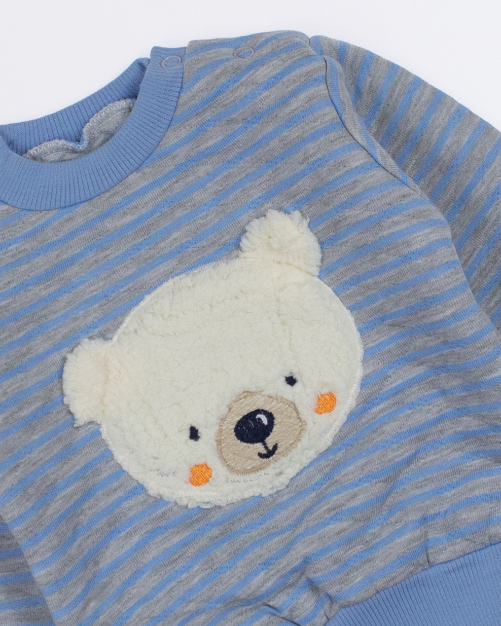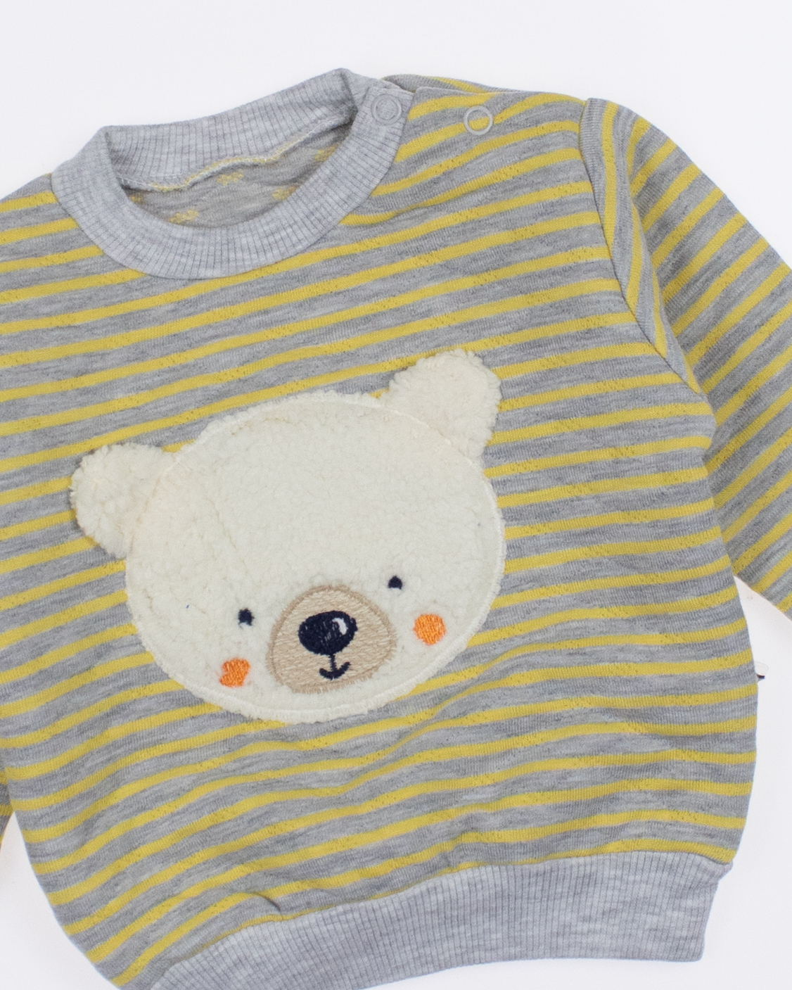 Модель имеет округлую горловину, которая обеспечивает удобство при надевании. Нижняя часть свитшота оформлена манжетом, что не только придает стильный вид, но и гарантирует хорошую посадку. На груди расположен милый принт мишки, который добавляет наряду игривости и ярких красок, подчеркивая индивидуальность маленькой принцессы. Еще одной удобной особенностью является застежка-кнопки на плече, которая позволяет легко и быстро одевать и раздевать малыша, избегая лишних усилий и дискомфорта. Этот свитшот – отличное решение для повседневной одежды, идеальный как для прогулок на свежем воздухе, так и для домашних игр.