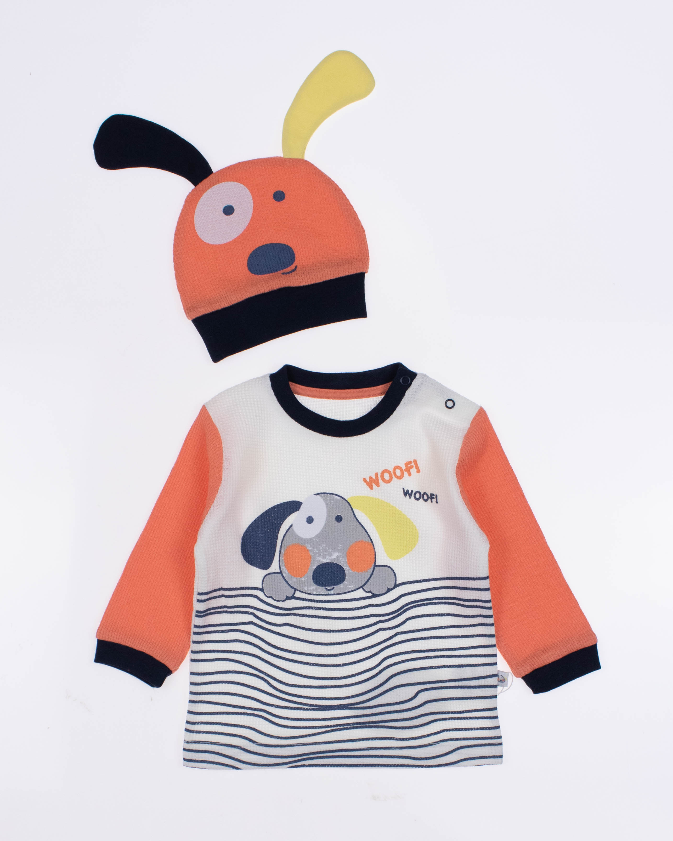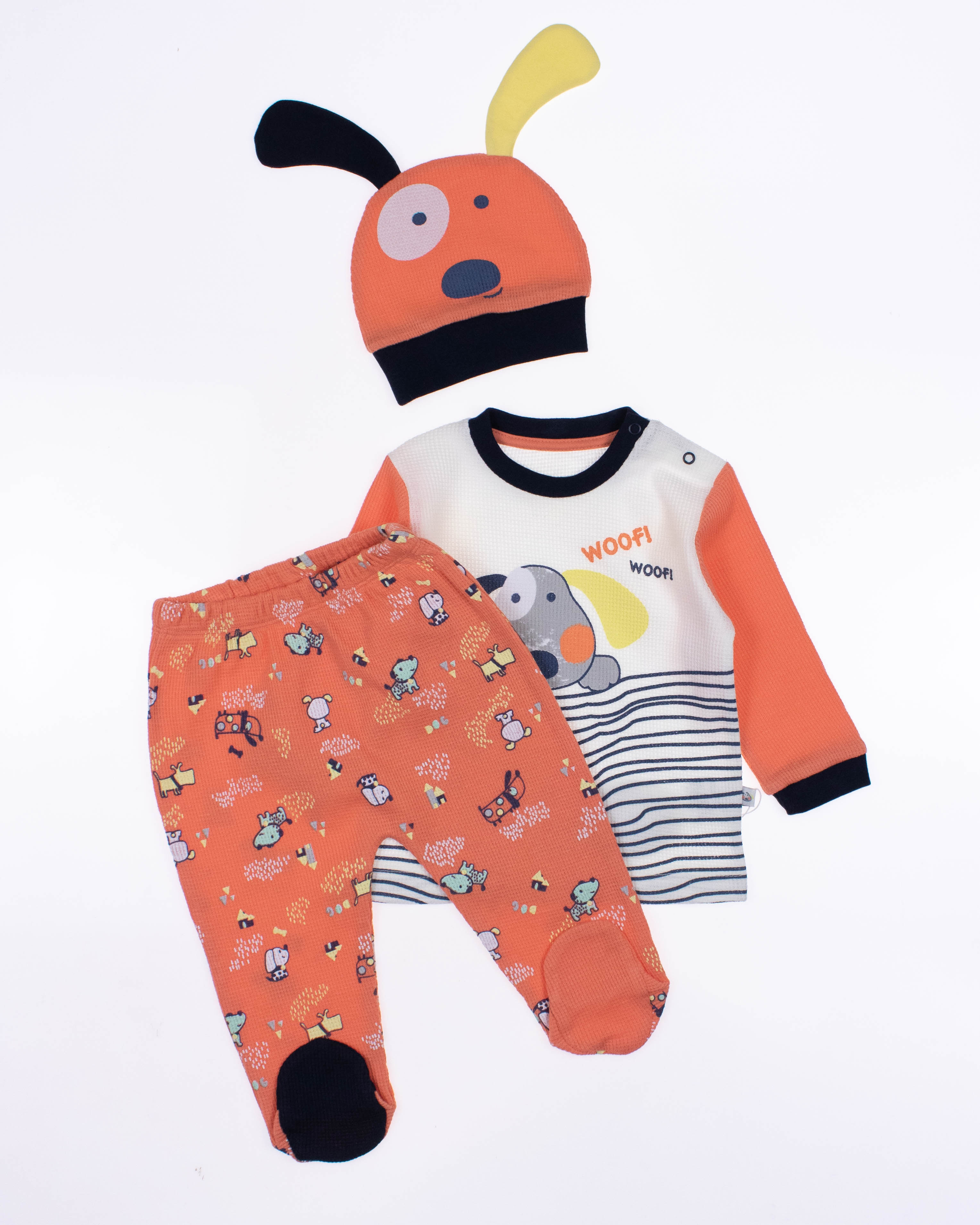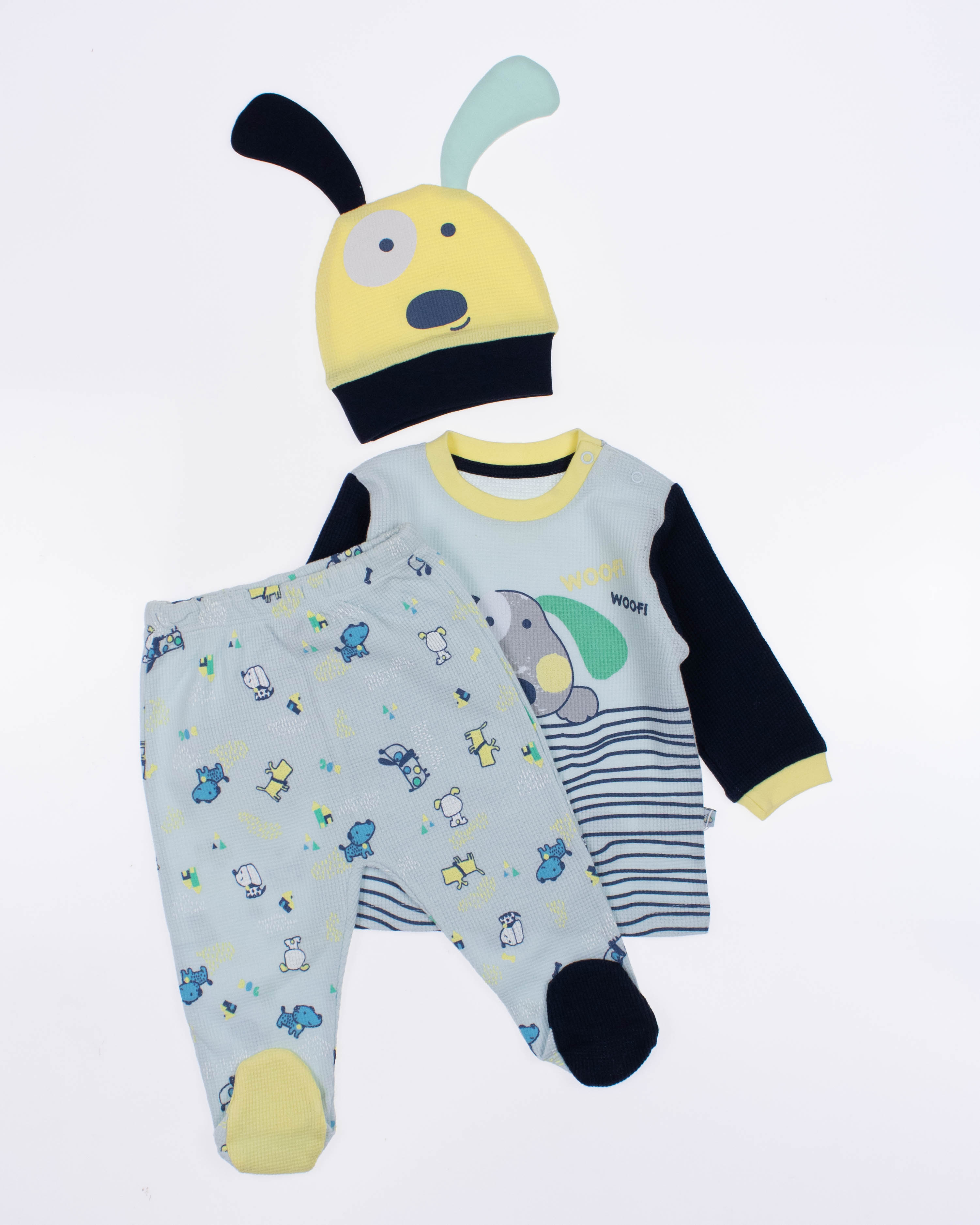Функциональный, удобный и симпатичный комплект MYMIO BABY из 100% хлопка. Он включает в себя пять предметов: это кофточка с длинным рукавом, ползунки и шапочка. Каждую деталь можно надевать отдельно или комбинировать с другими вещами.