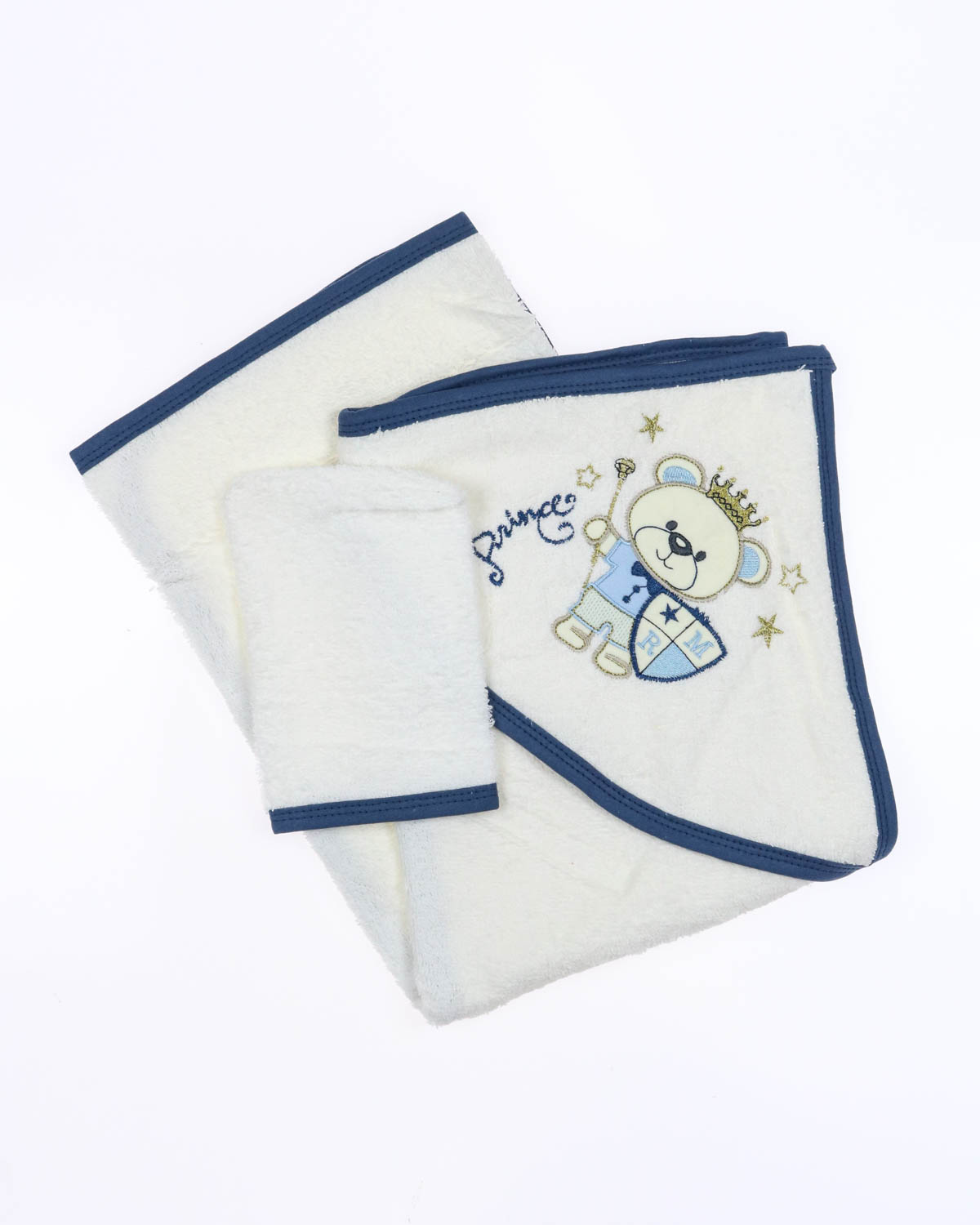 Полотенце с капюшоном и рукавица,  позволяет вытирать ребенка после купания так, чтобы его головка всегда оставалась в тепле. Благодаря петельке -   детское полотенце с капюшоном легко повесить сушиться, а варежкой можно вытереть ребёнка после кормления, а также утром после крепкого сна.  Детское полотенце из махровой ткани приятное на ощупь, отлично впитывает влагу и быстро сохнет. Капюшон декорирован милейшей аппликацией и вышивкой. Края детского полотенца обработаны хлопковой трикотажной окантовкой.