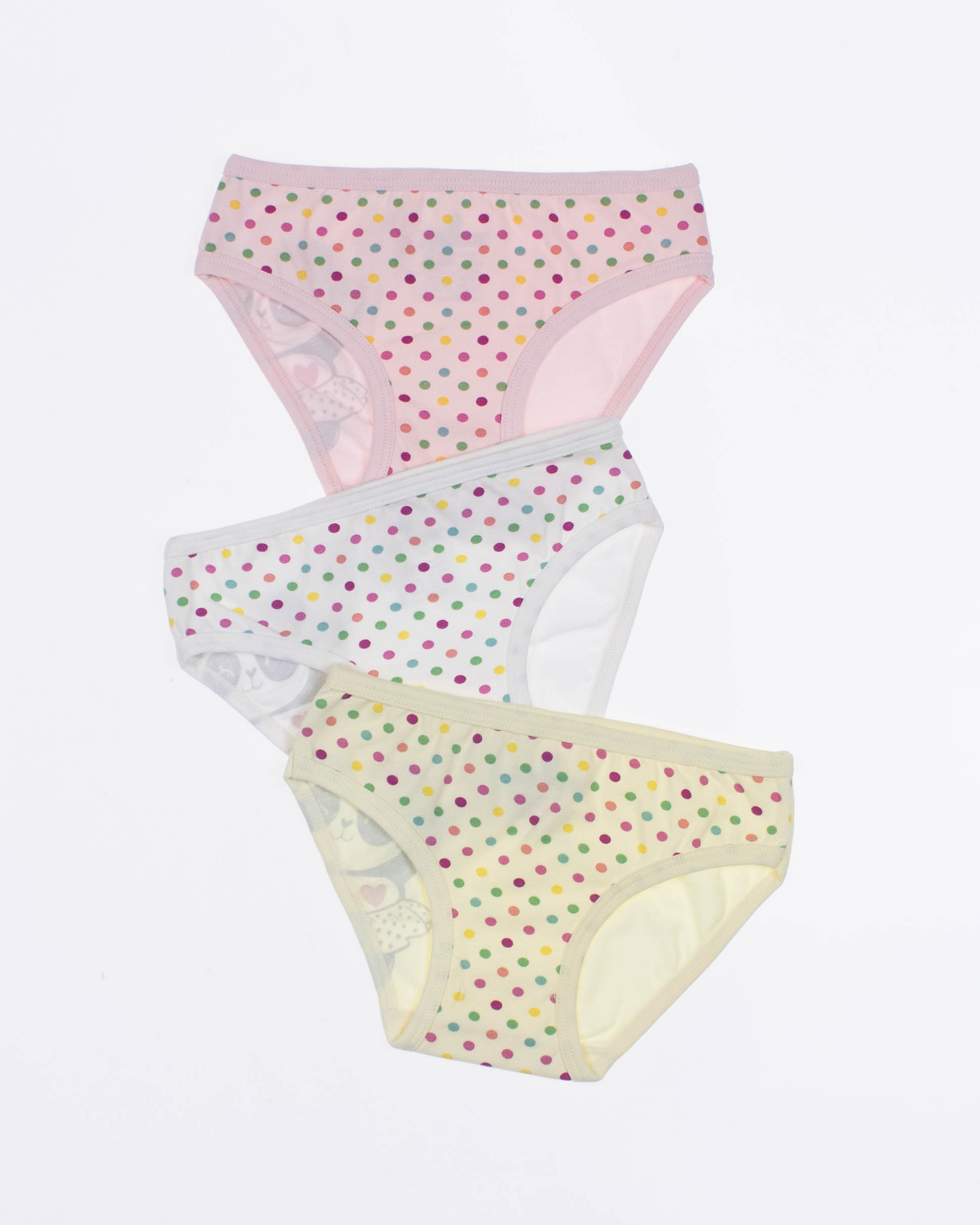 Tрусики BAYKAR для девочки оптом в нежной цветовой гамме. Милый принт с двух сторон, резинки не впиваются в нежную кожу. Эластичное полотно прилегает к бедрам, натуральный хлопок обладает дышащими свойствами. Трусики представлены в трех пастельных оттенках.