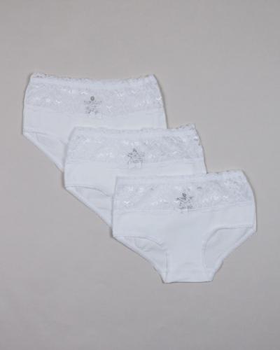 Трусы детские для девочек хлопковые, украшены узорчатым эластичным кружевом.Классическая модель с удобной посадкой, мягкие на ощупь, комфортные и безупречные в носке. Мягкая резинка не давит и не натирает кожу. Дышащая, хлопковая ткань гарантирует комфорт в течение дня.