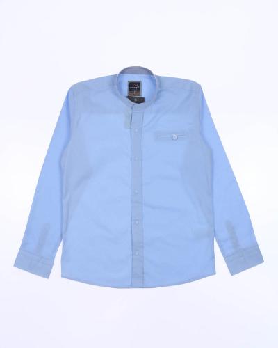 Рубашка прямого кроя с длинными рукавами, воротничком-стойкой, застегивается на кнопки. На груди декоративный карман.